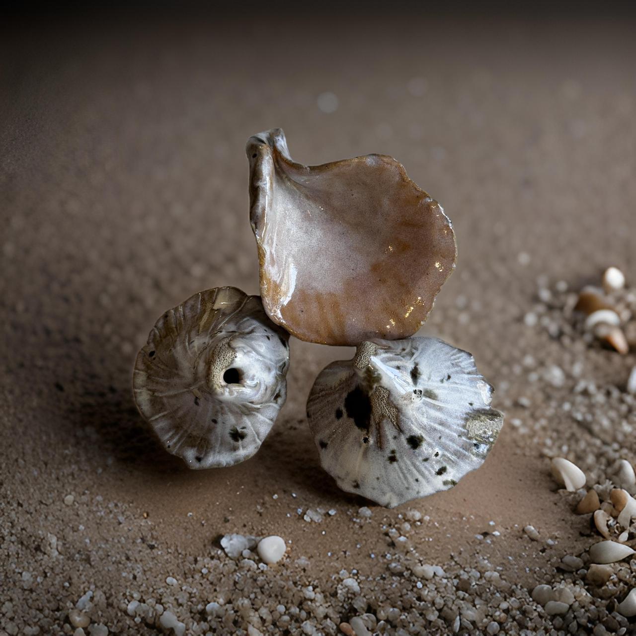 Set de tres conchas marinas de gres blanco